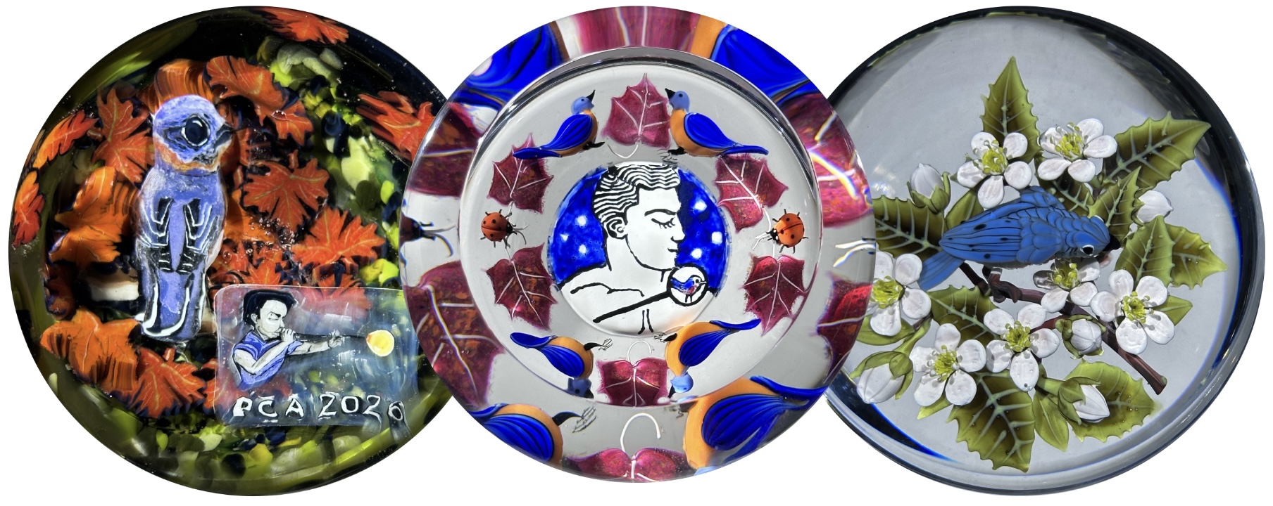 For this year's annual paperweight, inspiration was taken from Corning, New York, the location of the much anticipated 2026 Biennial Convention. The artists who brought you these beautiful weights are American artist Stephen Boehme, French artists Richard Loesel & Renaud De Putter and American artist Clinton Smith. Click here to learn more.
